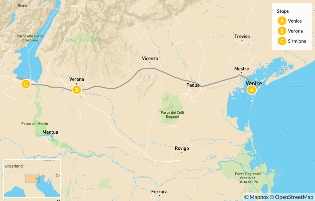 Map of Highlights of Venice, Verona & Lake Garda – 10 Days