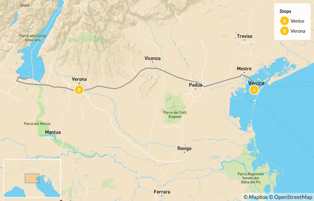 Map of Highlights of Venice, Verona, & Lake Garda – 6 Days
