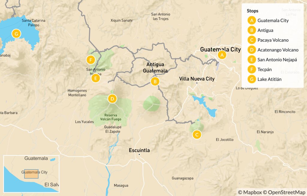 Map of Hike Guatemala: From Antigua to the Maya Highlands – 12 Days