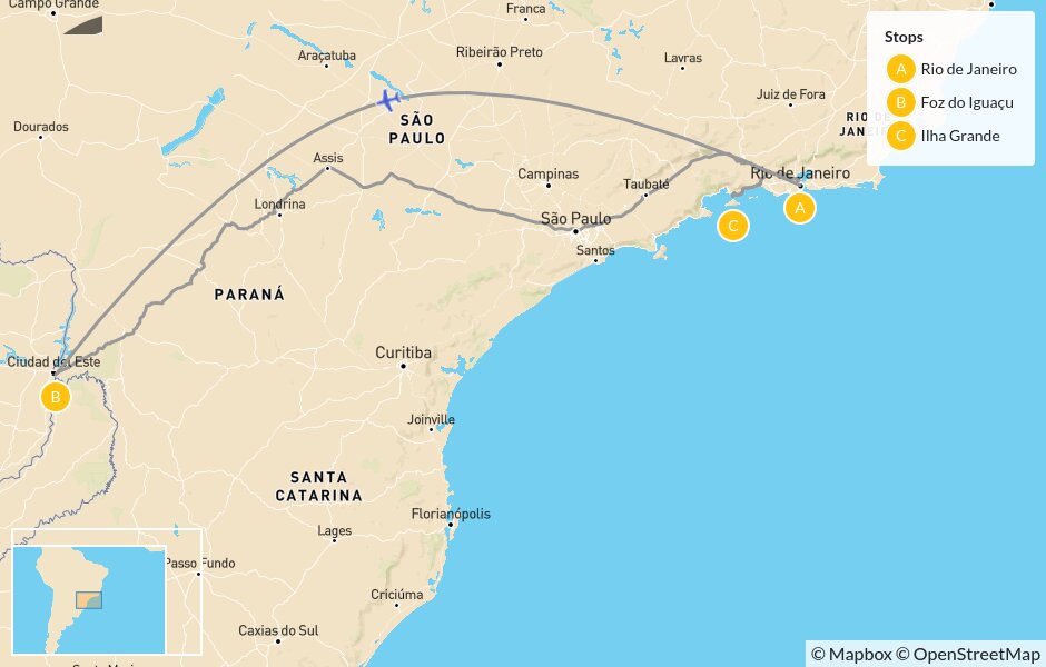 Map of Hiking & Beaches in Brazil: Rio de Janeiro, Foz do Iguaçu & Ilha Grande – 10 Days
