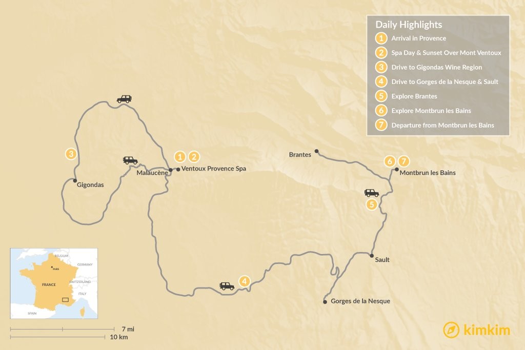 Map of Hiking & Hilltop Villages in Provence – 7 Days