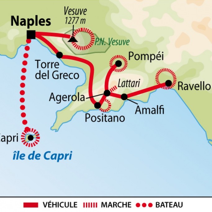 Map of Hiking in Naples and the Amalfi Coast – 7 Days