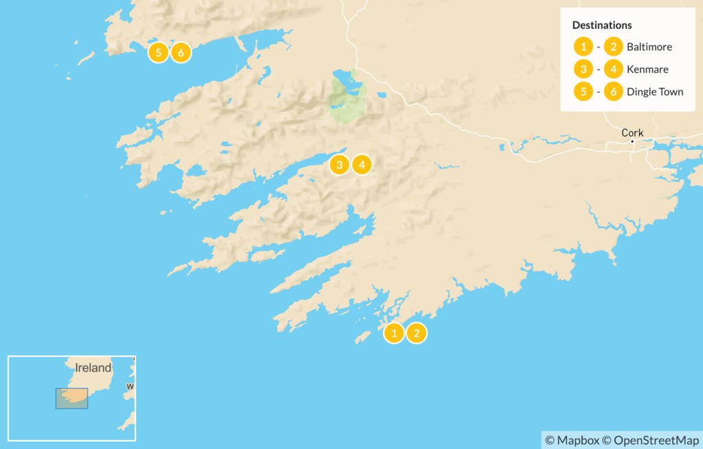 Map of Hiking & Island Hopping in Cork & Kerry – 7 Days