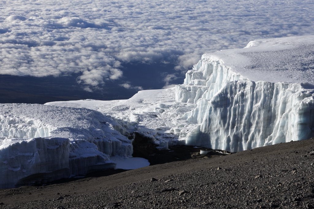 Prepare yourself for a hyper-early start between midnight and 2 am. This final push to the summit is the most mentally and physically challenging portion of the trek. You’ll ascend through heavy scree up to Stella Point, on the crater rim. This is one of the three summits of Kilimanjaro and sits at 18,885 feet (5,756 m) between the Rebmann and Ratzel glaciers. Once here, you’ll take a break to enjoy the most magnificent sunrise views of the trip.