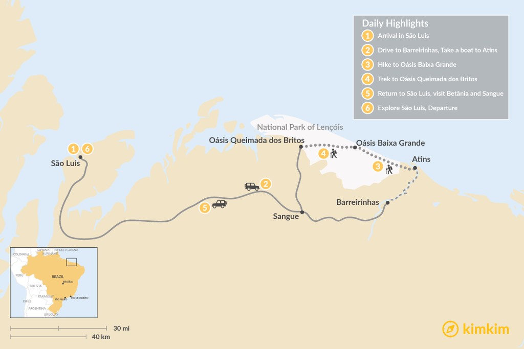 Map of Hiking the Dunes of Lençóis Maranhenses National Park – 6 Days