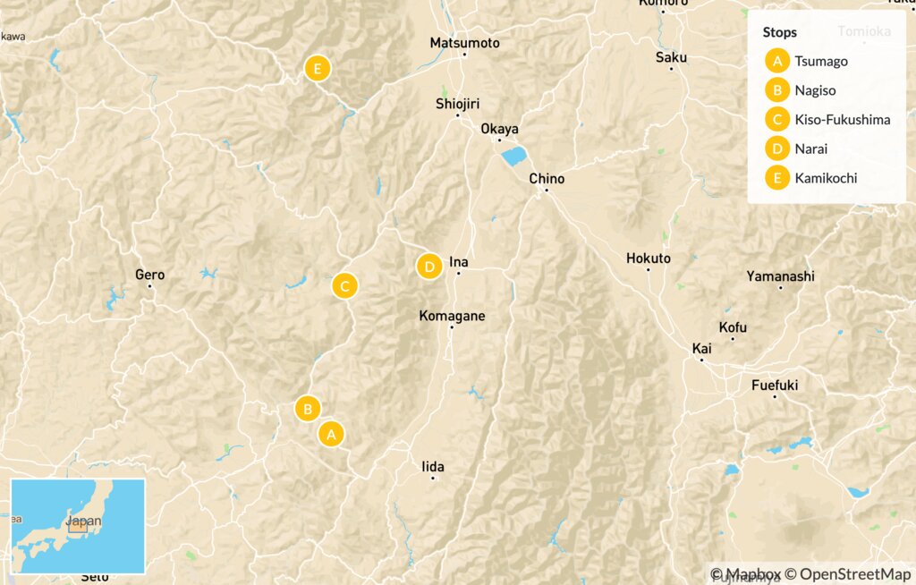 | Day 1 | Arrive in Magome – Hike to Tsumago and Nagiso | Tsumago |