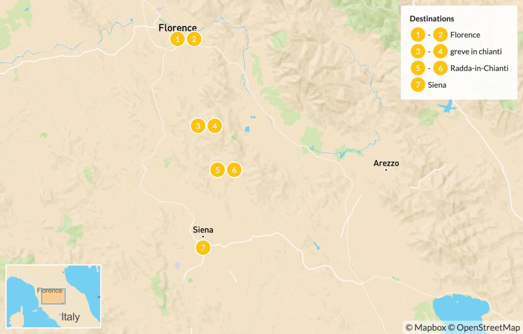 Map of Hiking Through Tuscany: Florence, Chianti, & Siena – 8 days