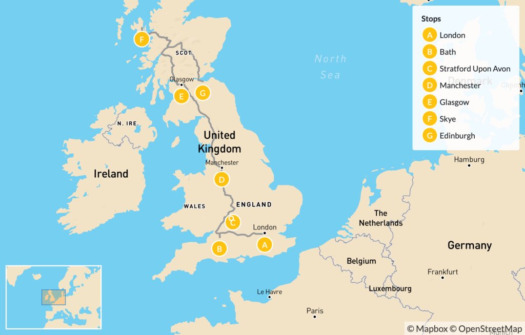 Map of Historic England & the Highlights of Scotland – 10 Days