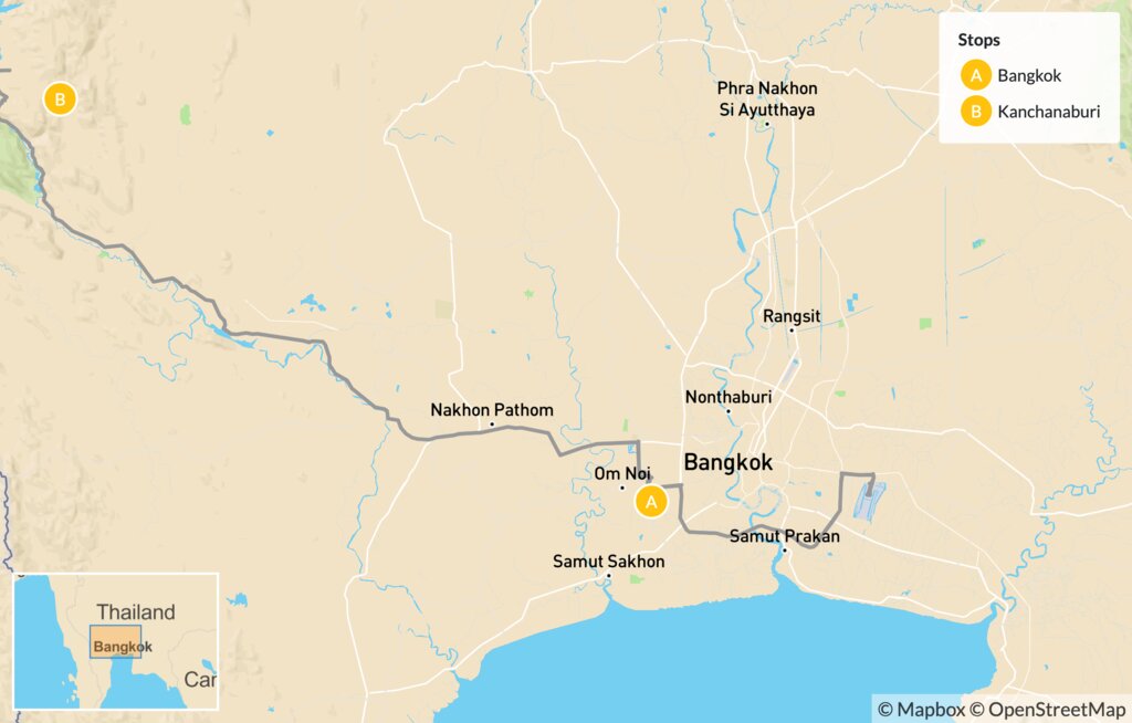 Map of Historic Thailand: Bangkok & Kanchanaburi – 6 Days