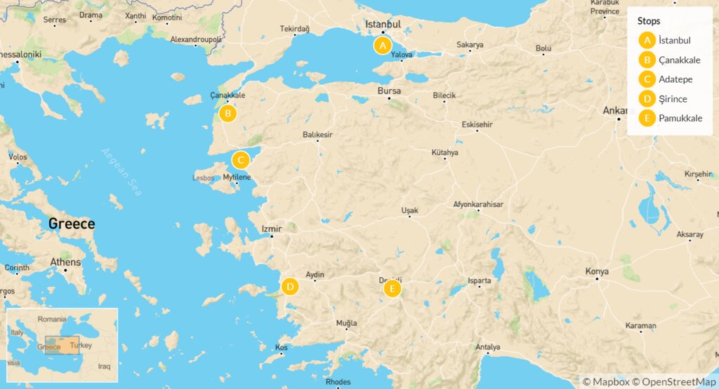 Map of Historic Turkey: Istanbul to Pamukkale – 9 Days