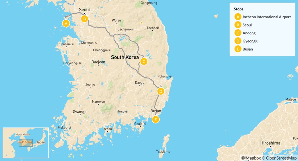 Map of History & Culture in South Korea: Seoul, Andong, Gyeongju & Busan – 10 Days