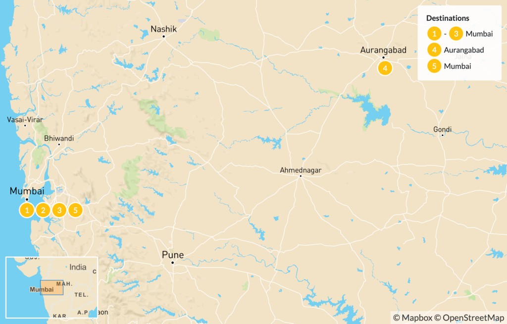 Map of History Tour of India: Mumbai & Aurangabad – 5 Days