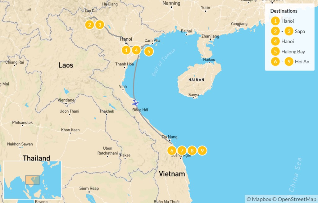 Map of Honeymoon in Northern Vietnam: From Hanoi to Hoi An – 10 Days