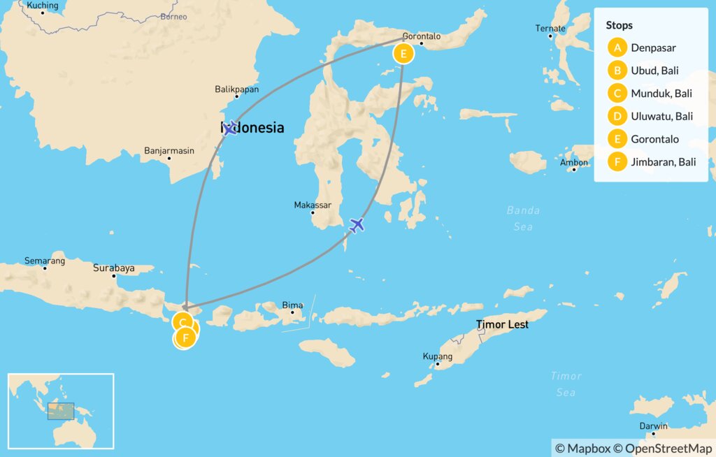 Enjoy your last morning relaxing on the “Island of Love” before taking a boat transfer to the harbor of Gorontalo and on to the airport for your flight back to Bali. Your driver will be waiting for you upon arrival in Denpasar and will drive you to your hotel in Uluwatu. Spend the balance of the day relaxing on the beach or by your hotel pool.