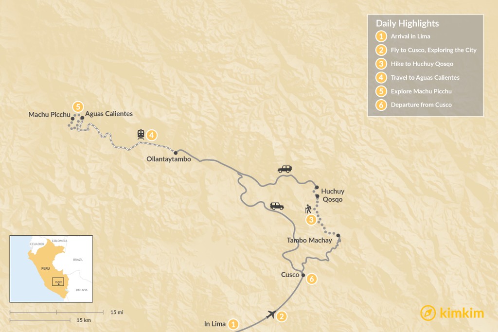 Map of Huchuy Qosqo & Machu Picchu – 6 Days