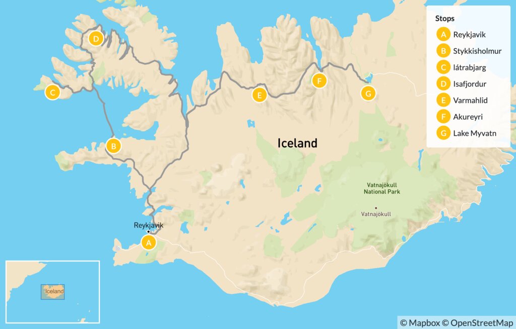 Map of Iceland Best of the West: Snæfellsnes & Westfjords – 15 Days