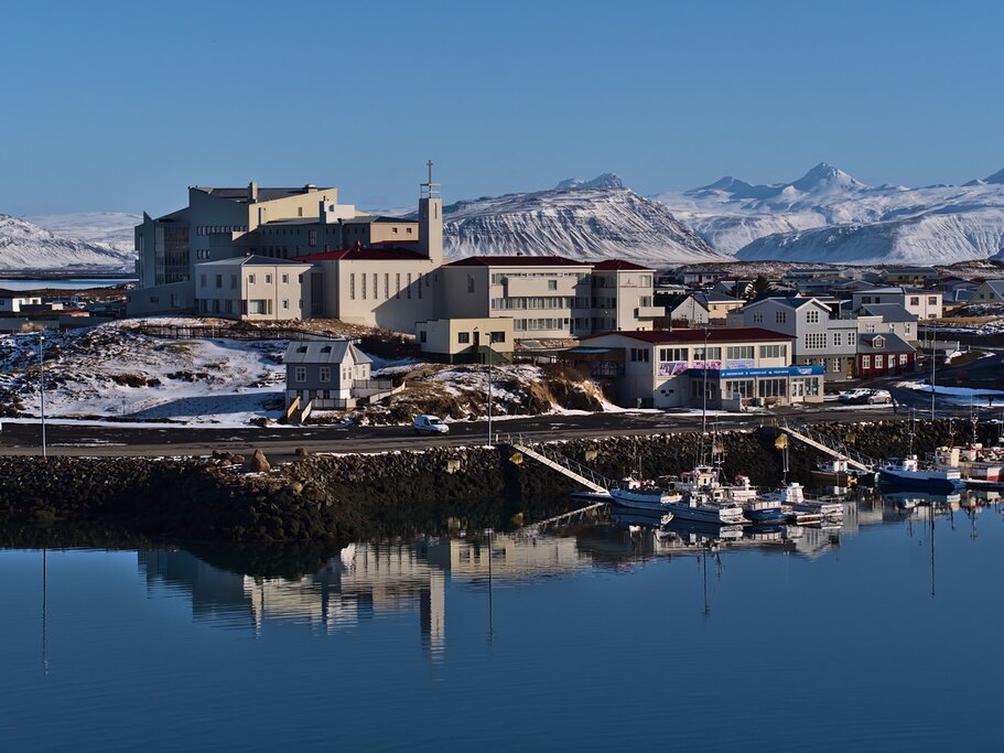 Today is yours to enjoy Stykkishólmur. With approximately 1,200 residents, this is the largest town in Snæfellsnes. It was founded back in the mid-16th century and is known for its charming harbor area, which is filled with fishing trawlers bobbing in the water. Nearby are colorful wooden houses and a futuristic church. You can spend time strolling the town or hike up to the bright red lighthouse or Mount Helgafell, both of which offer great views of Breidafjordur Bay. In the evening, head out to dinner at one of the restaurants near the waterfront to try traditional Icelandic food.