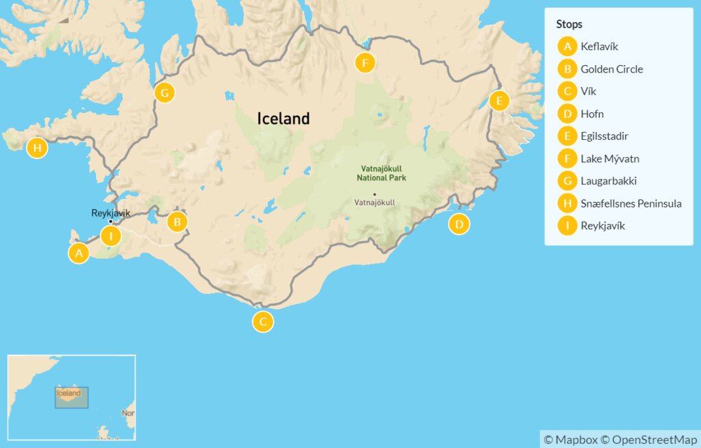 Map of Iceland Extended Ring Road Self-Drive Adventure – 10 Days