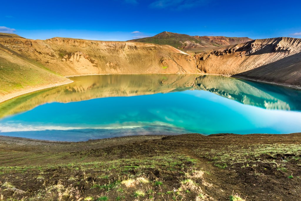 - Krafla/Viti crater: If you drive past the Krafla power station (also worth a stop), you will find the Viti crater, part of the Krafla volcanic system. This crater is filled with a bright blue lake; on a sunny day, this makes for a great photograph.