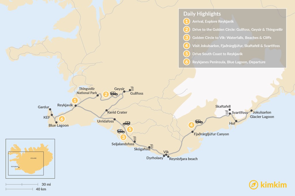 Map of Iceland South Coast Family Road Trip – 6 Days