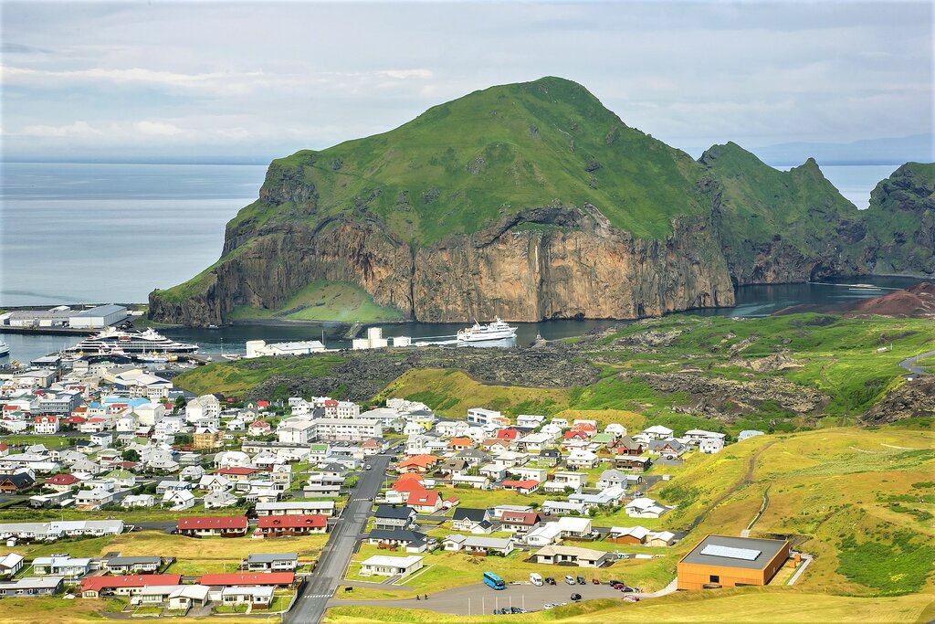 You’ll have the afternoon to visit the Storhofdi cliffs at the southern tip of Heimaey, view the nesting puffin colony, and hike up and around the 660-foot-tall (200 m) dormant volcanic cone of Eldfell, created when a fissure opened up and erupted in 1973, decimating half the town. The Eldheimar Museum tells the story and is built around houses half-buried by lava. Although it looks like the lava flow stopped just short of the Stafkirkjan stave church, this was a gift of Norway in 2000 to commemorate the millennium of Iceland’s official adoption of Christianity.