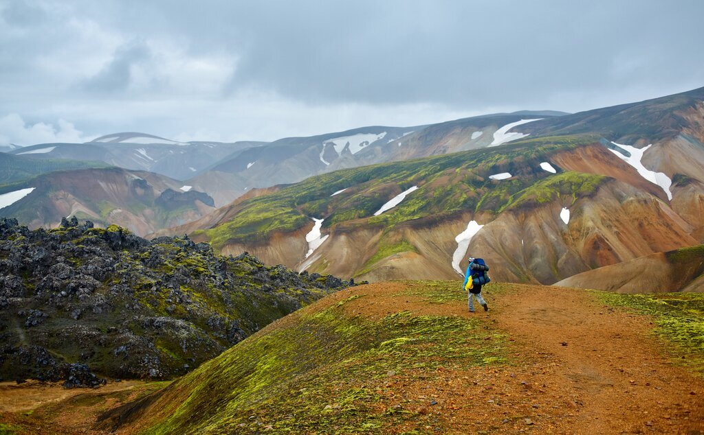 One highlight is Hveradalir. Known as the “Valley of the Hot Springs,” this natural wonderland is one of the largest geothermal areas in the country. These springs are a great place to stop to relax in rejuvenating waters. You can also hike the nearby ridgetop trails amid rhyolite mountains shining bright Crayola shades of red, blue, and green.