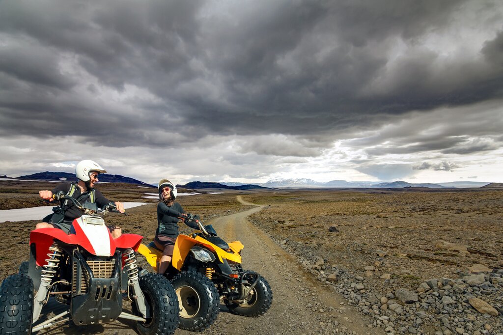 After getting the blood pumping, give your legs a break with an exciting ATV (quad bike) adventure. This thrilling two-hour ride begins at the foot of the awe-inspiring Mýrdalsjökull glacier. From there, you’ll zoom across wild and diverse landscapes, passing landmarks like the hulking remains of a DC3 plane wreckage. Continue across black-sand beaches, stopping at landmarks and lookout points like those at the magnificent Dyrhólaey Peninsula, which is the southernmost tip of Iceland.