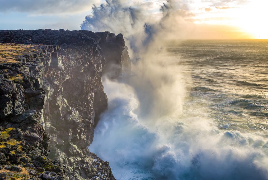 Next visit the Geysir geothermal area, with bubbling mud pits and steam vents. The Geyser erupts like clockwork every 10 minutes so you’re bound to get some good photos. Continue from here to Gullfoss (“Golden Falls”)—a massive waterfall that is sure to impress. Finish your day at a secret lagoon where you can soak in the geothermal waters and perhaps get a glimpse of the Northern Lights.