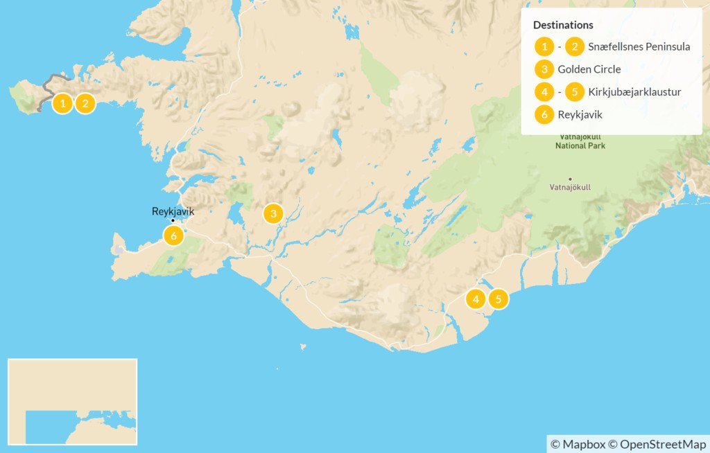Map of Iceland: Winter Waterfalls & Glacier Tours – 7 Days
