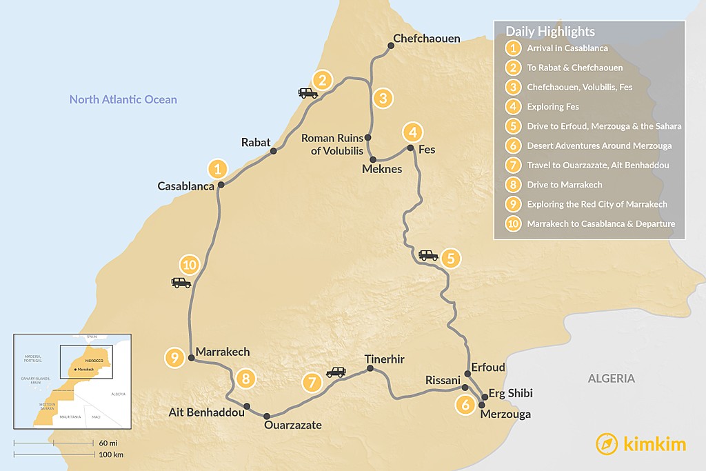 Map of Imperial Cities & Desert Grand Tour – 10 Days