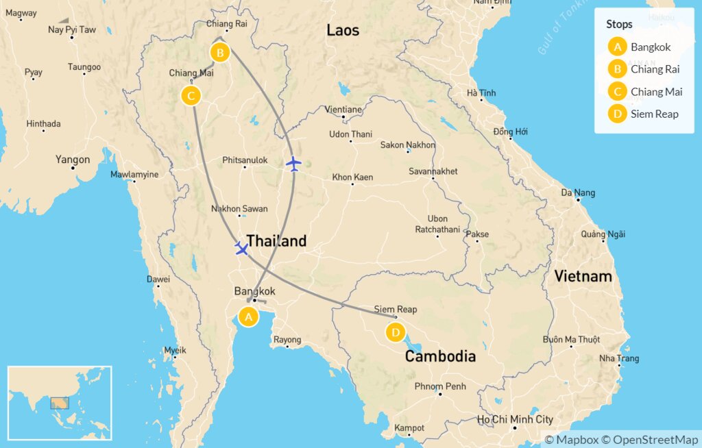 Map of Impressions of Thailand & Cambodia – 9 Days