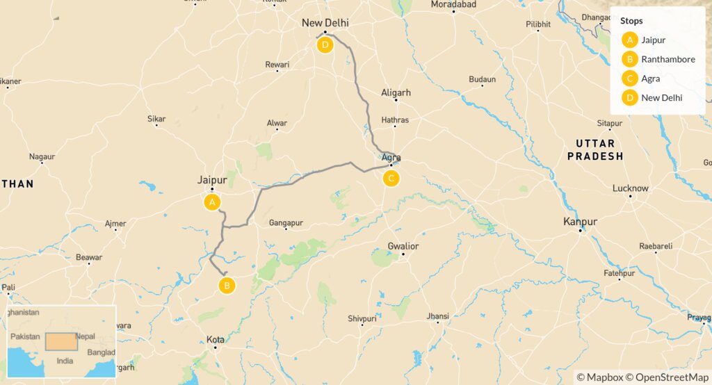 Map of India Golden Triangle & Wildlife Tour – 7 Days