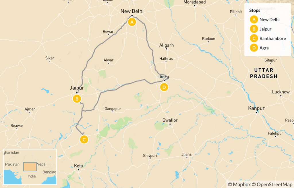 Map of India’s Tigers & Taj Mahal – 8 Days