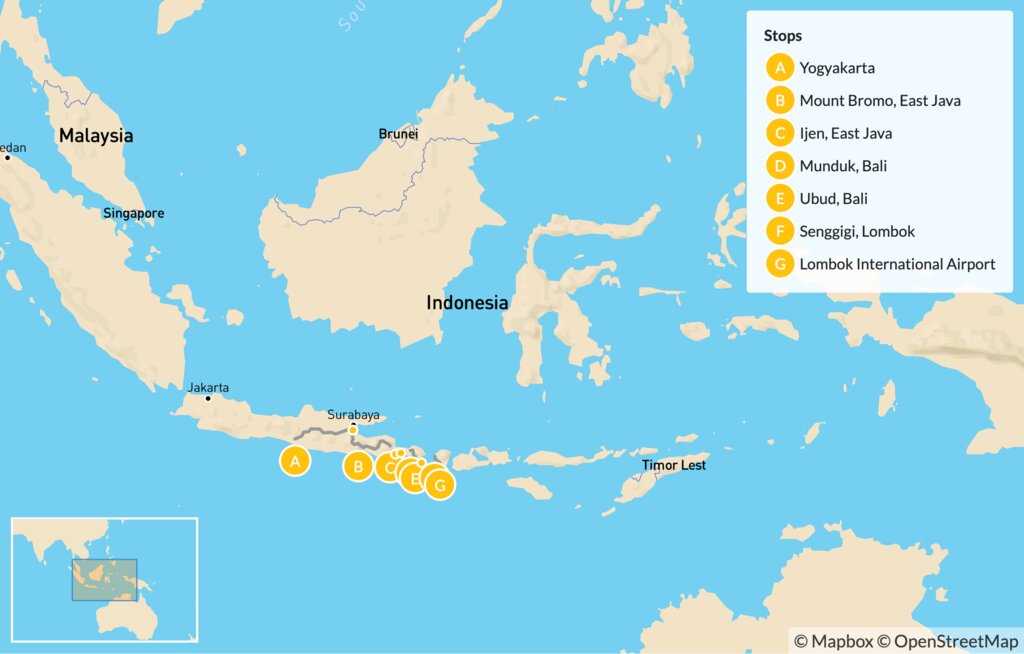 Map of Indonesia Culture & Landscapes: Java, Bali & Lombok – 12 Days