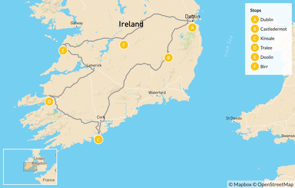 Map of Ireland Road Trip: Castles & Coast – 9 Days