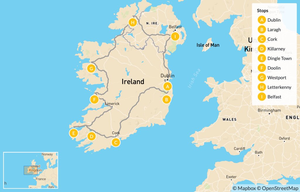 Map of Ireland’s Ultimate Self-Drive Adventure – 15 Days