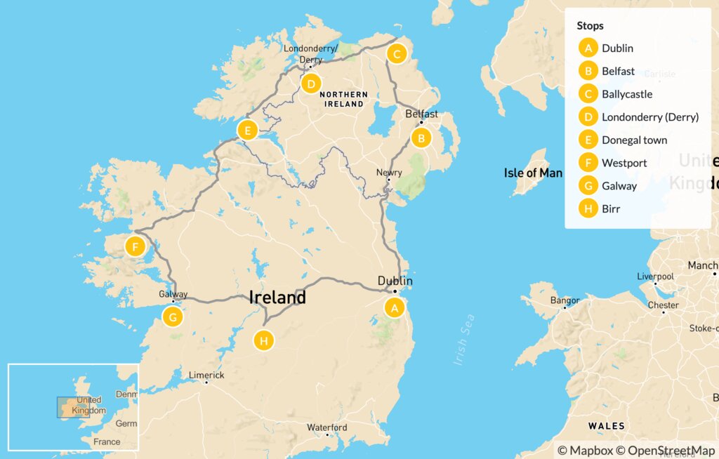 Map of Irish Self-Drive Adventure: Belfast to Dublin – 11 Days