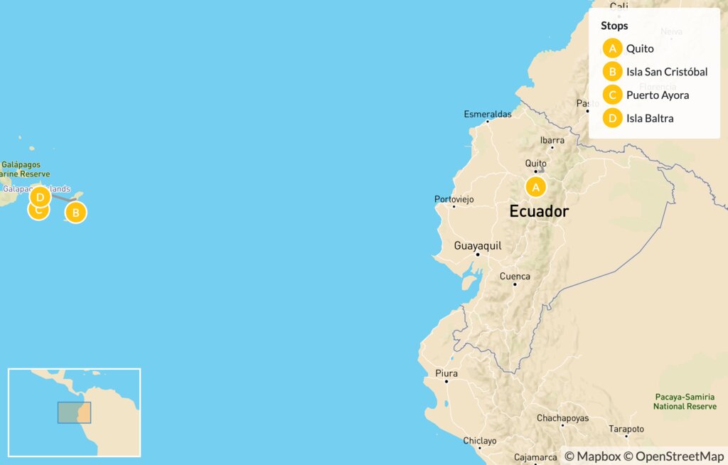 Map of Island Life in the Galápagos: Quito, Isla San Cristóbal & Isla Santa Cruz – 6 Days