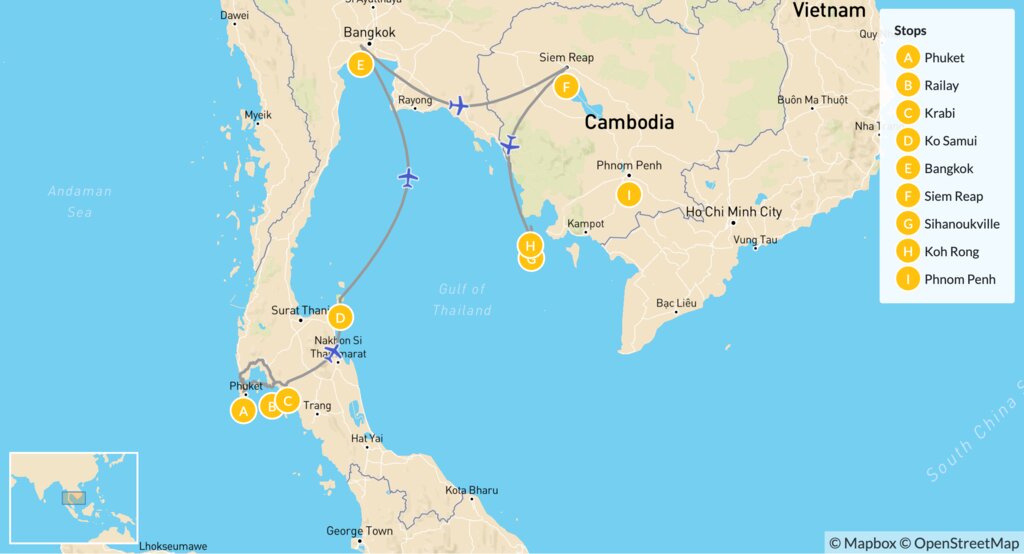 Map of Islands, Temples & Beaches in Thailand & Cambodia – 21 Days