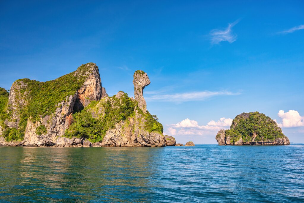 Today, you get to explore the popular Phi Phi Islands, which bring many travelers to the area. Hop in a boat and set off to discover the island group, home to pristine beaches, crystal-clear waters, and vibrant marine life. Start your tour at Ko Phi Phi Ley, made famous by the movie “The Beach,” filmed in Maya Bay. Enjoy views of the turquoise bay from the boat and continue around the island to Pileh Cove to swim in the warm waters.