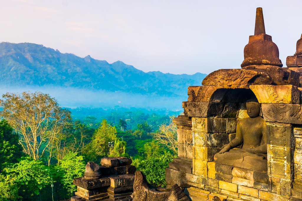 Early this morning, you will hit the road and drive northeast to the Suroloyo Peak on the border of Central Java and Special Region of Yogyakarta (1.5 hours). Stretch your legs and take a gentle hike of the area, working your way to a traditional Javanese village (about 2 hours) and enjoying Gamelan music (classic ensemble music played on bronze percussive instruments) before having lunch. From there, you will make the short drive to the ninth-century Mahayana Buddhist temple, Borobudur. Wander this vast complex, marveling at the historic temples and over 500 statues.