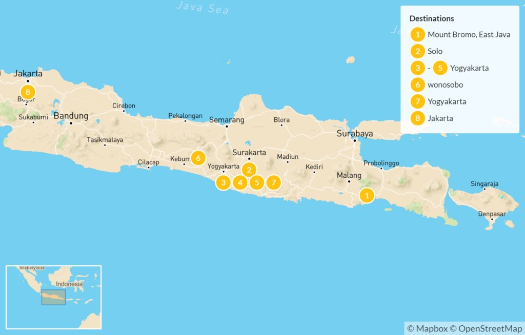 Map of Java: Mount Bromo to Yogyakarta – 8 Days