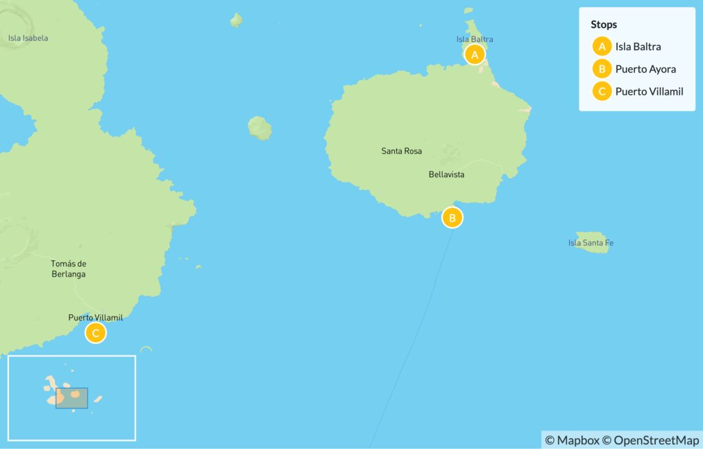 Map of Jewels of the Galápagos: Isla Santa Cruz & Isla Isabela – 8 Days