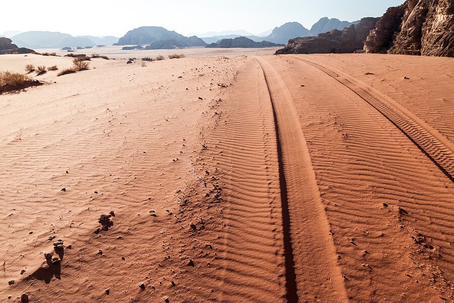 After an unforgettable desert sunrise and a hearty breakfast, you’ll continue cycling towards Disi. The mostly flat, intermediate-level route starts from Wadi Rum Village and takes you through 1.8 miles (3 km) of off-road terrain that crosses the mountains to Al Disi. From there, you’ll continue across the stunning red sand of the “Moon Floor” and finish the ride at a local camp for a sip of tea. Afterward, transfer back to your camp for another overnight stay in the desert.