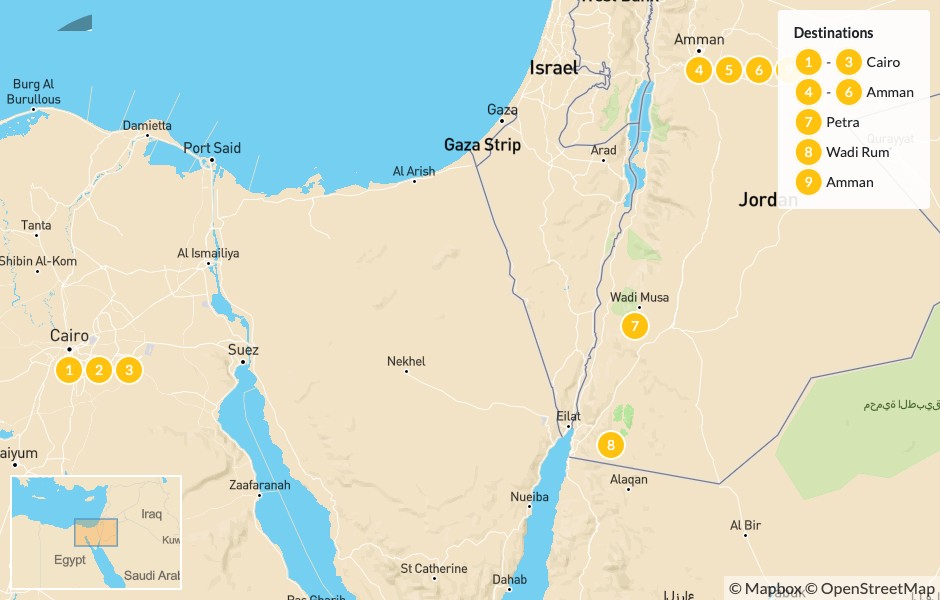 Map of Jordan & Egypt: Cairo, Amman, Petra, and Wadi Rum – 10 Days