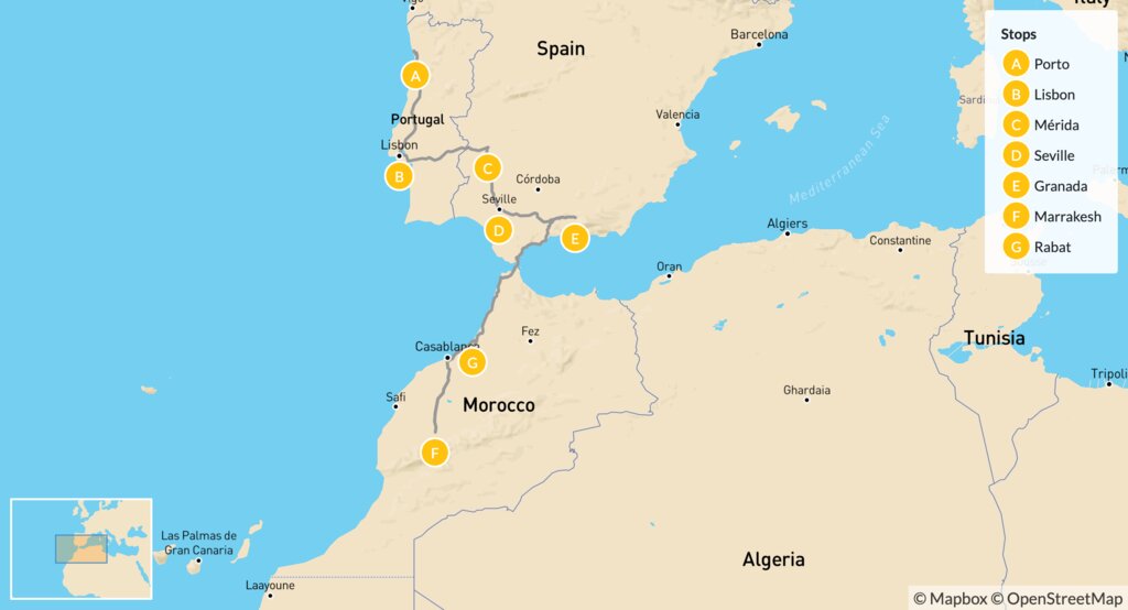 Map of Journey Through History in Portugal, Spain & Morocco – 14 Days