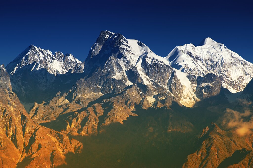 If you can, sit on the left of the plane, as you’ll be treated to spectacular views of the Central and Eastern Himalaya. You’ll also pass the peaks of Lhotse, Makalu, Nuptse, and mighty Everest, with your final destination, the Kanchenjunga Range, looming in the distance.