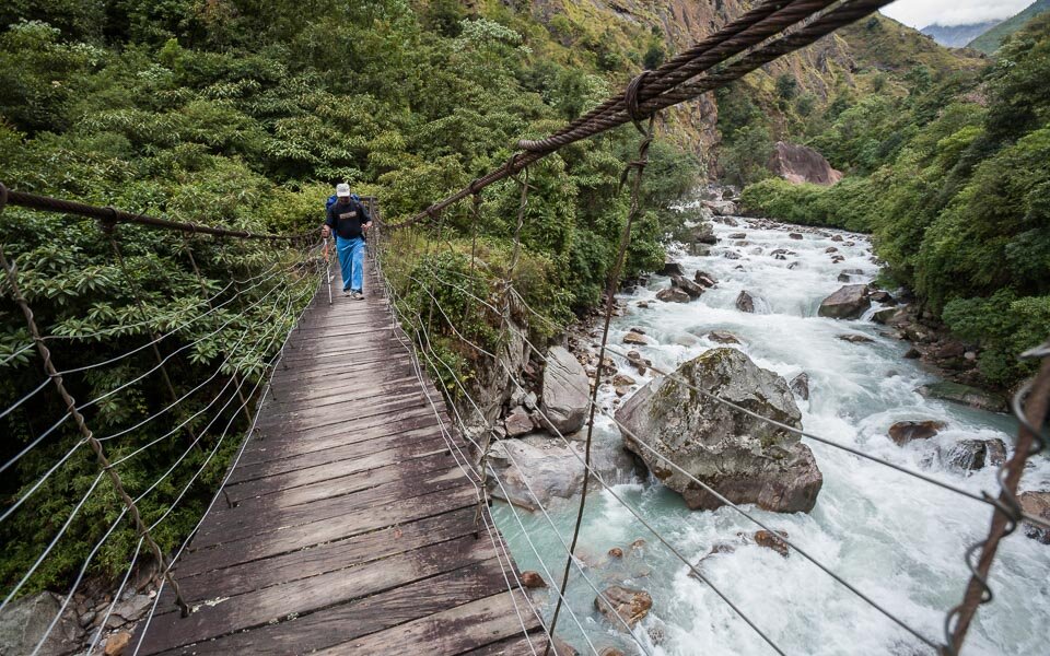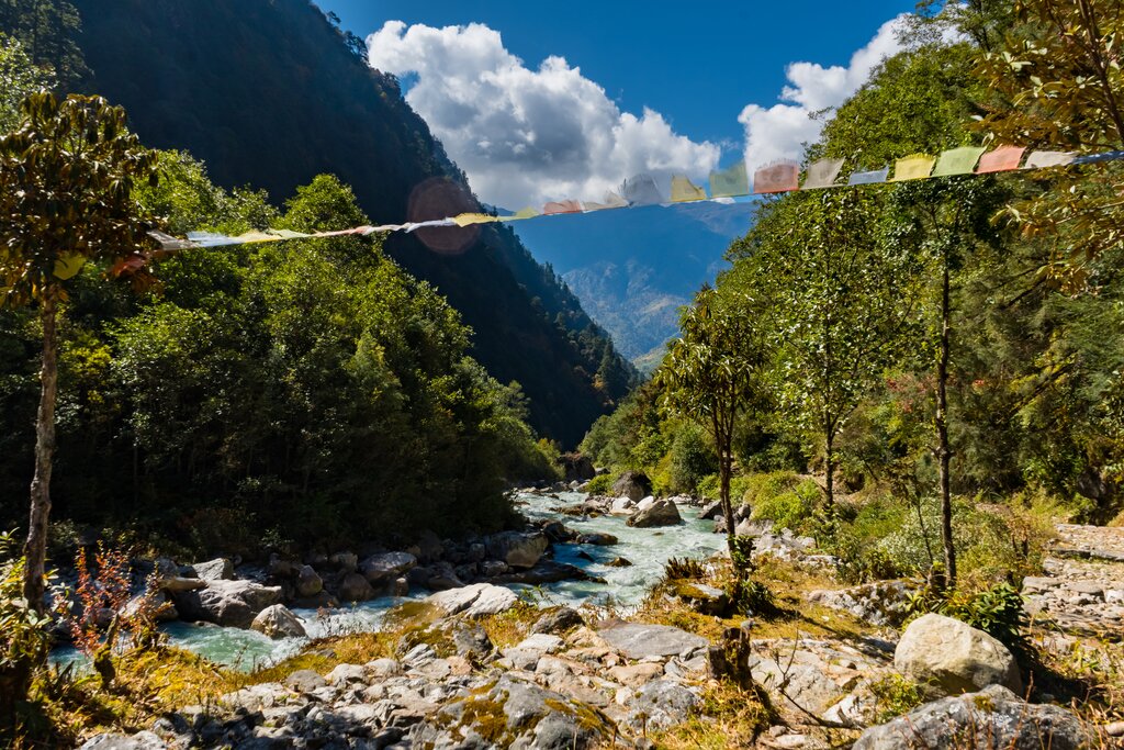 And you’re off! Lace up your hiking boots for the first leg of your trek to the Kanchenjunga Base Camps. Today’s route will take you across suspension bridges, making your way through dense forests and along steep gorges as you follow a riverside trail. You’ll stop in the village of Solima for lunch before continuing over more suspension bridges on a rigorous ascent up to 8,070 feet (2,460 m), passing rhododendron trees on your way to the small hillside village of Amjilosa, where you’ll overnight. In total, the day’s hike takes about five hours.