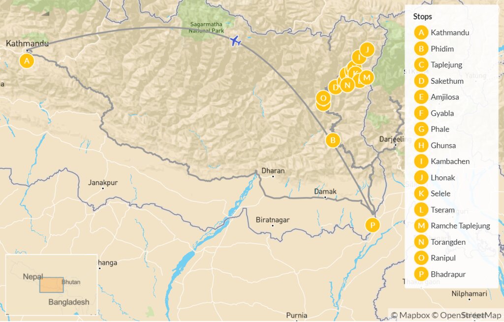 Map of Kanchenjunga Double Base Camp Trek – 24 Days