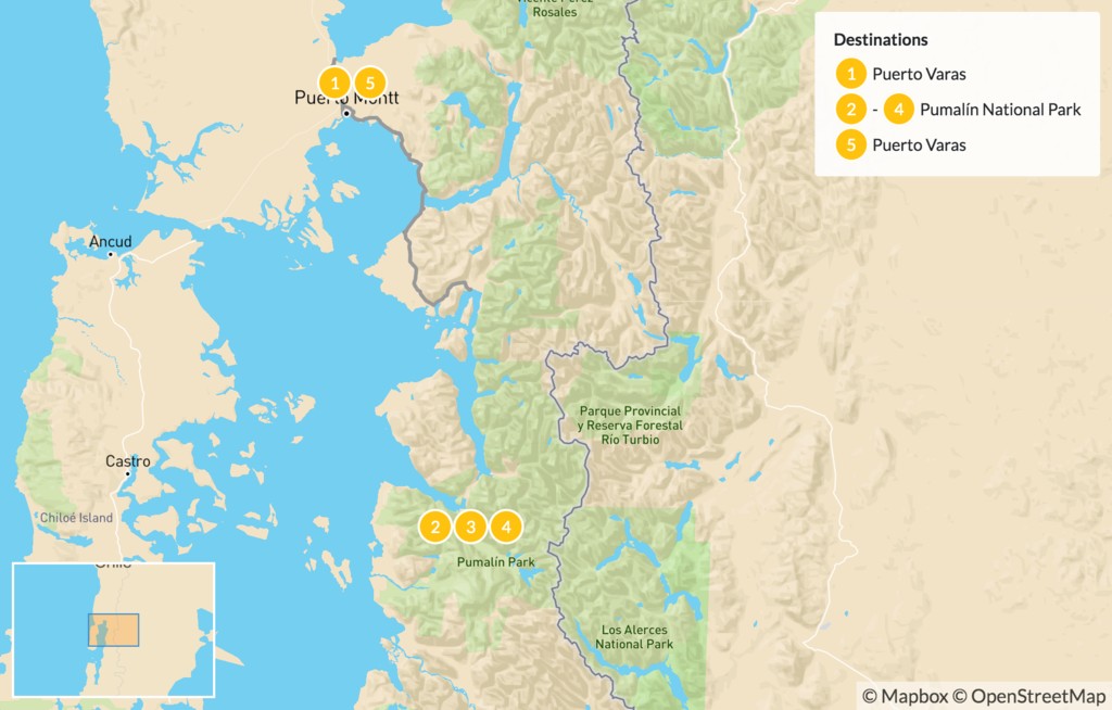 | Day 1 | Arrival at Puerto Varas | Puerto Varas |